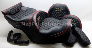 Honda Gold Wing – GL 1500 kompletten Polstersatz im Retro-Look neubezogen und neugepolstert. In Classic-Schwarz und Matt-Rot, Rautensteppung mit doppelter Ziernaht in Rot, Ziernaht Schwarz, Stickereien in Gold. Komfortpolsterung incl. Gel-Aktivmatte und mit neuer Sitzheizung ausgestattet. Viele weitere Goldwing-Beispiele auf unserer Homepage: 1987 erschien in den USA die GL 1500, erstmals mit Sechszylindermotor und 74 …