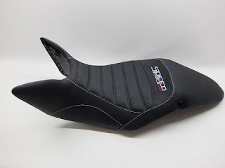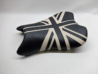 Triumph Street Triple Sitzbank komplett in HARRISON-Smoke und in Creme im Union Jack Style neubezogen. An den Körper angepasste Komfortpolsterung mit einer Gel-Aktivmatte ausgestattet,Ziernähte in Schwarz und Creme. Von Triumph haben wir noch mehr Beispiele auf unserer Webseite: Das Fahrzeug basiert auf der Supersportmaschine Daytona 675 und wurde im Juni 2007 auf den Tridays… …