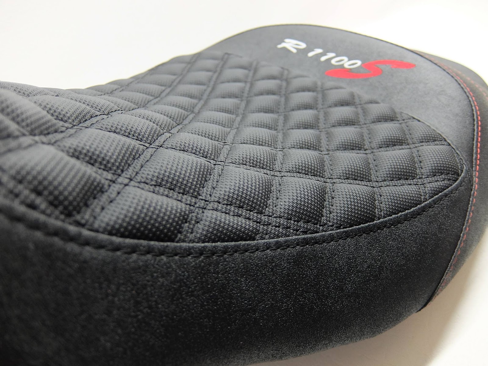 Sitzbank komplett in Antirutsch und Nubuck neubezogen, Rautensteppung mit doppelter Ziernaht in Schwarz, Ziernaht Rot, Stickerei in Weiß/Rot. An den Körper des Fahrers angepasste Komfortpolsterung inkl. Gel‑Aktivmatte.
