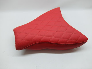 unterlegte Rautensteppung mit roter Ziernaht und doppelte Ziernähte in Schwarz.