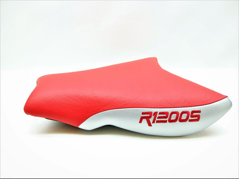 Kompletter Neubezug in Power-Rot/Classic-Silber (ohne Ziernaht), Stick in Rot mit einer an den Körper angepassten Komfortpolsterung/Gel-Aktivmatte.