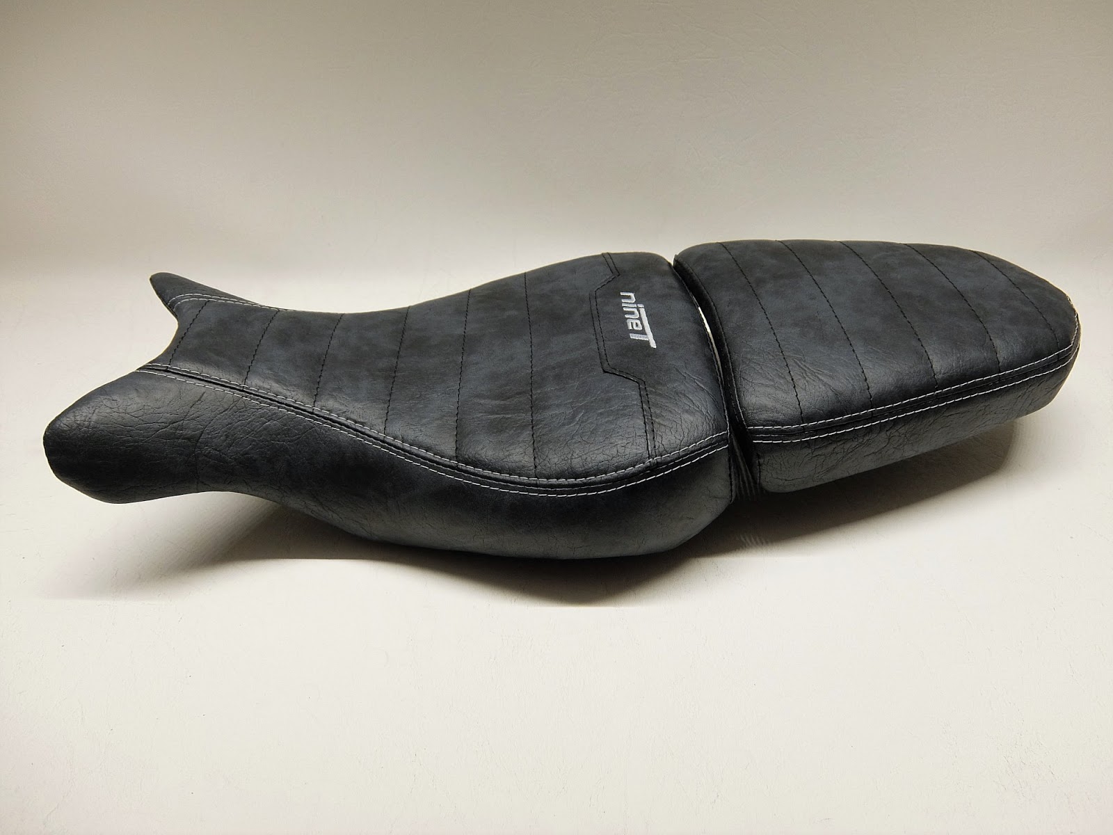 Neubezug in Used Look AC36, Quersteppung mit dunkelblauer Ziernaht, doppelte Ziernaht/Stick in Silber. Mit körperspezifischer Komfortpolsterung/Gel-Aktivmatte.