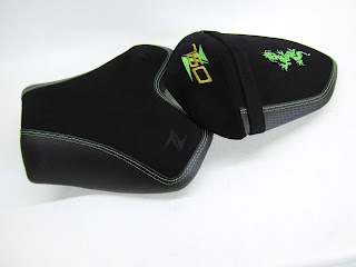 Kawasaki ZX900E Fahrersitzbank gemäß Kundenwunsch komplett Neubezug in Antirutsch und Carbon mit Komfortpolsterung incl. Gel-Aktivmatte und Sitzheizung, Rautensteppung mit doppelter Ziernaht in Grün, Ziernaht Grün/Schwarz, Einlegestreifen in Lack-Grün Kawasakibänke, große Auswahl auf unserer Homepage: Mit dem Modell ZX900E wurde ein völlig neues Design eingeführt, bei dem ein Doppelscheinwerfer und ein separater Ram-Air-Lufteinlass das bisherige …