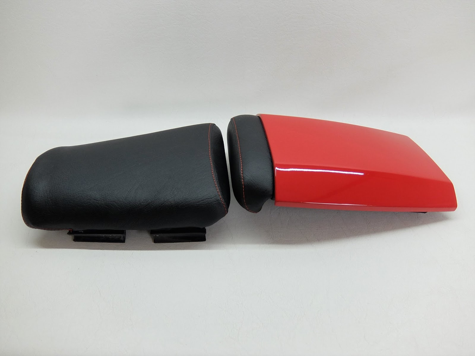 Wir haben den Fahrer & Soziussitz komplett mit einem Neubezug in Classic-Schwarz und mit einer Ziernaht in Rot gefertigt.