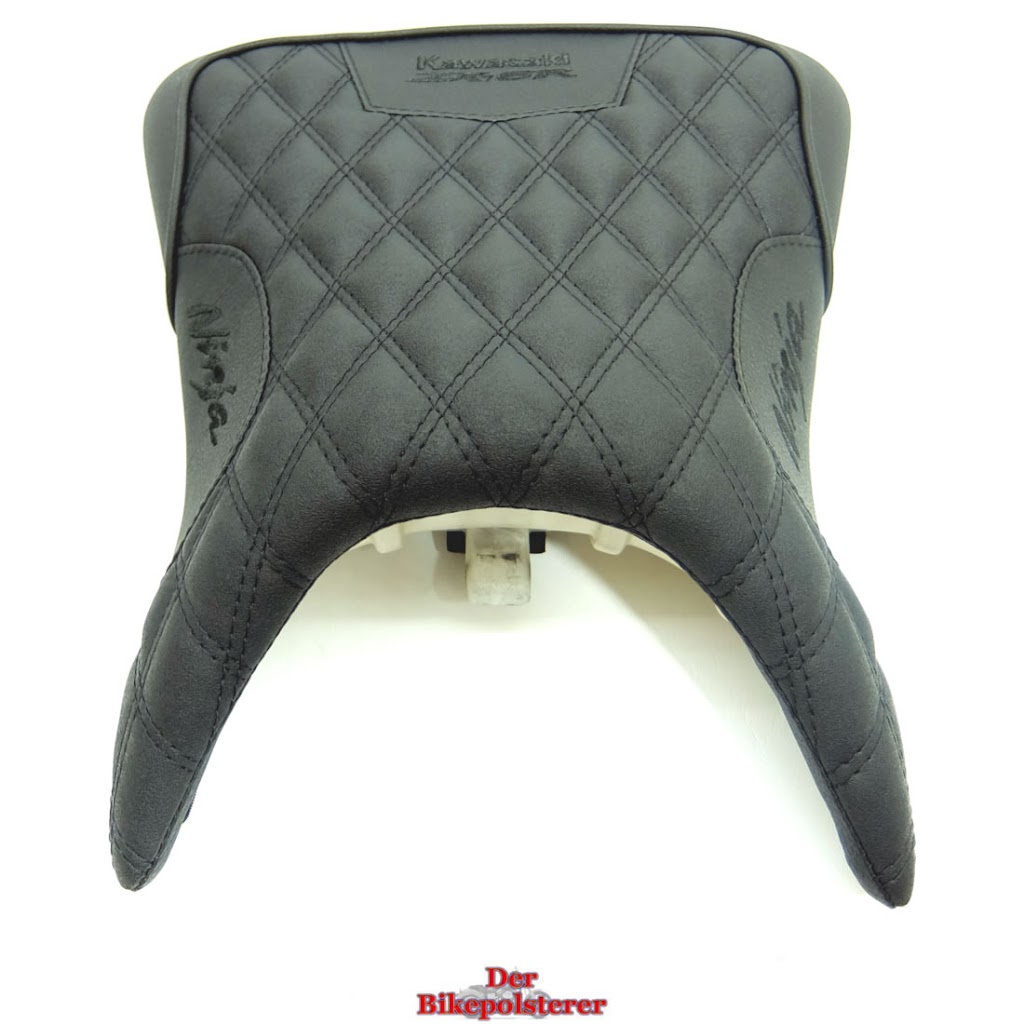 Der Fahrersitz ist aus hochwertigem Kunstleder gefertigt, das mit Nubuk und Matt-Schwarz einen edlen Kontrast bildet. Die Komfortpolsterung sorgt für eine optimale Druckverteilung und vermeidet Taubheitsgefühle oder Schmerzen bei langen Fahrten. Die Ziernähte, die 3-fach Stickerei, die Rautensteppung und der Keder verleihen dem Sitz einen individuellen Charakter, der zu deinem Bike passt. Du kannst die Farbe der Nähte und der Stickerei nach deinem Geschmack wählen.