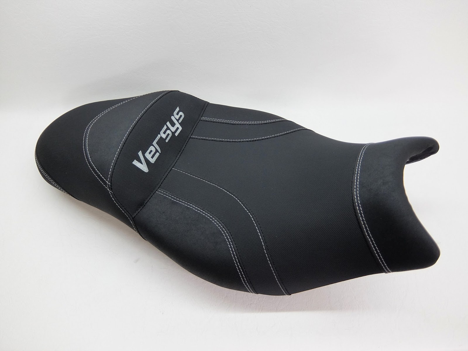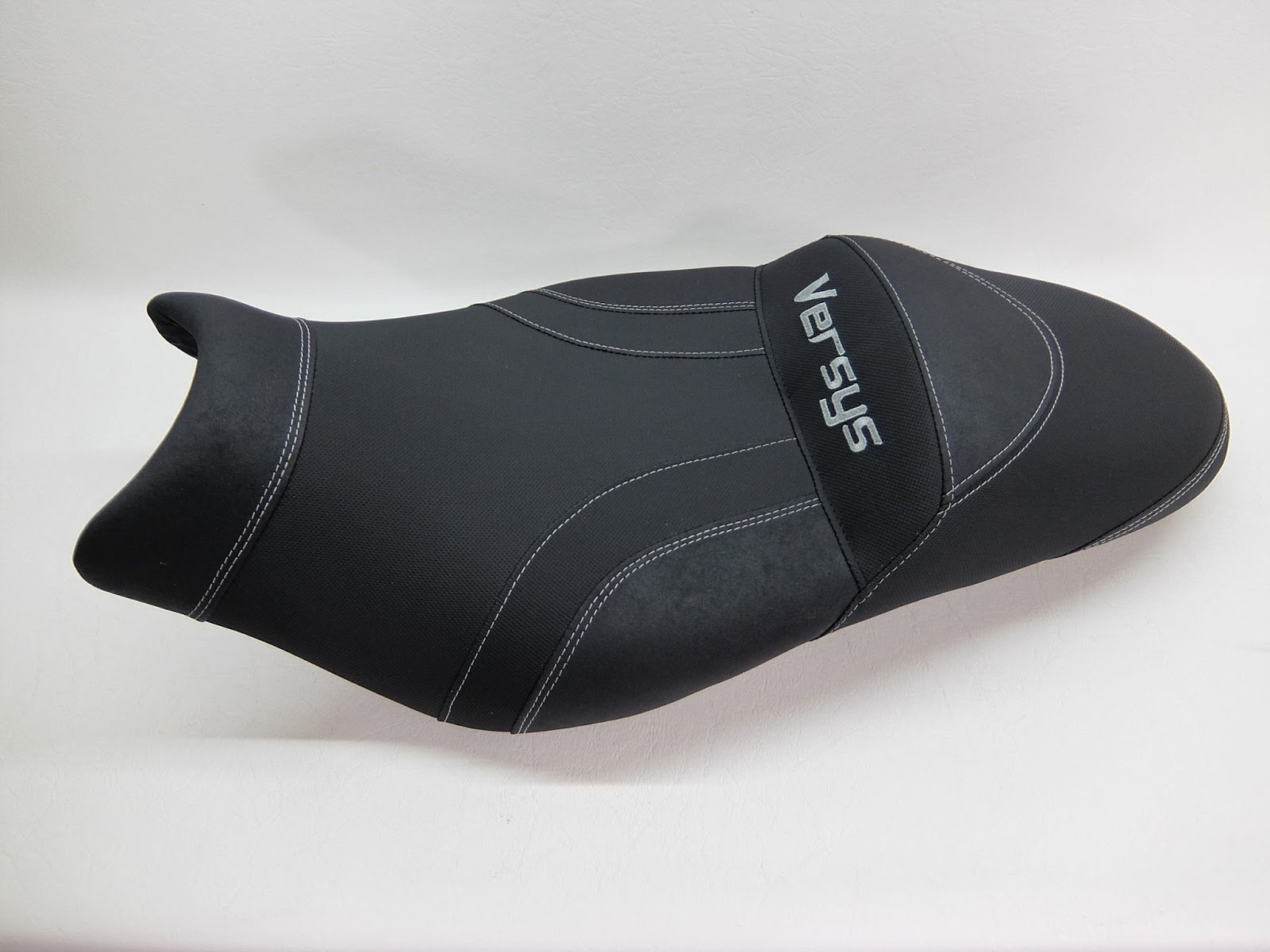 Sitzbank mit einem kompletten Neubezug in Antirutsch und Nubuck mit an den Körper angepasster Komfortpolsterung/Gel‑Aktivmatte, Lendenstütze 3 cm nach hinten gezogen und um 3 cm erhöht. Doppelte Ziernaht und Stickerei in Silber.