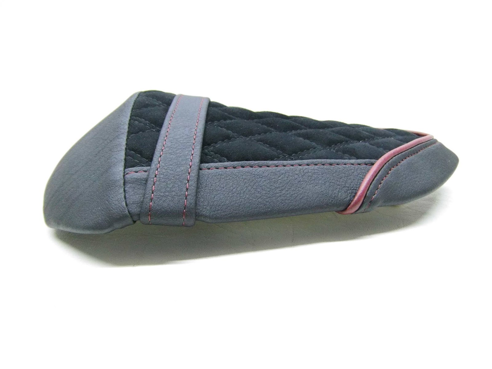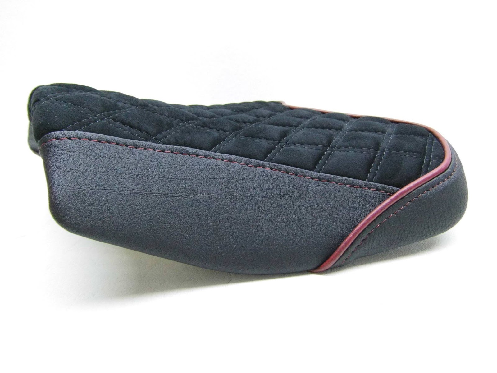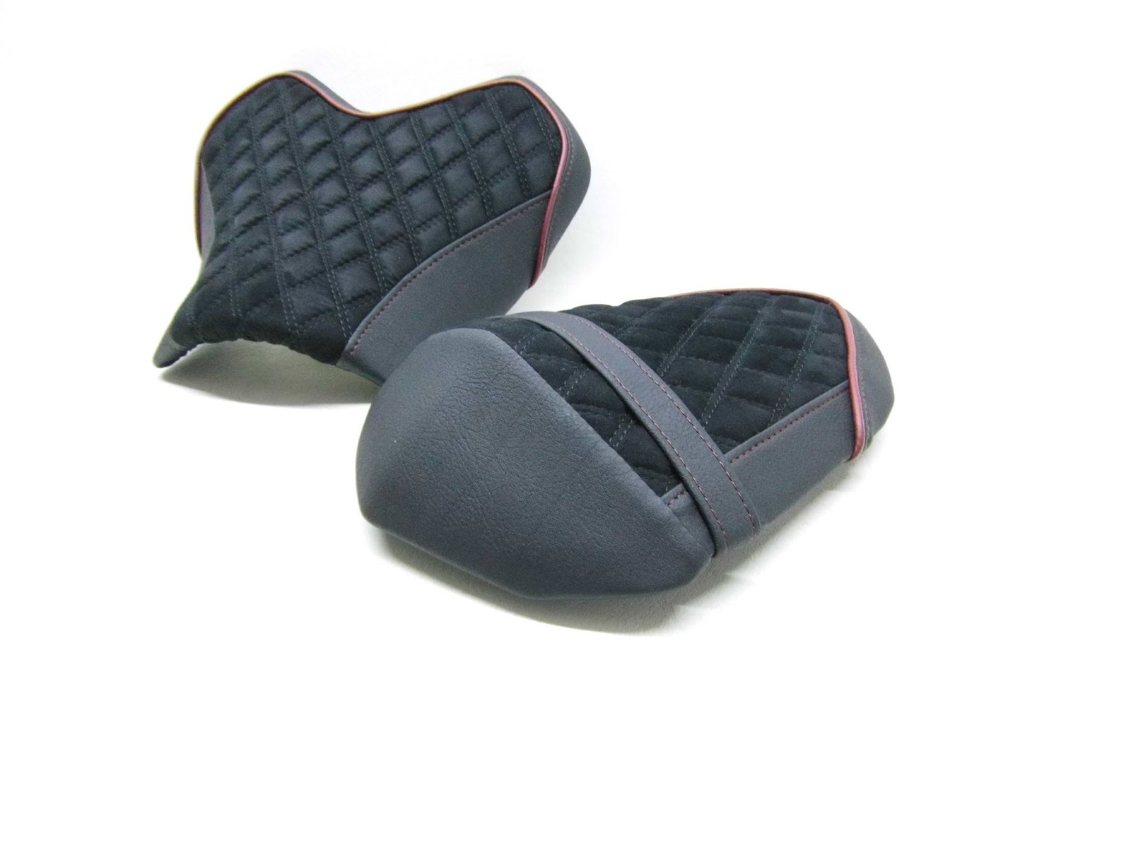 Fahrer & Soziussitz kompletter Neubezug und Neupolsterung in Alcantara-S und Matt mit einer körperspezifischen Komfortpolsterung incl. Gel-Aktivmatte. Rautensteppung mit doppelter Ziernaht in Schwarz, Ziernaht und Keder in Bordeaux