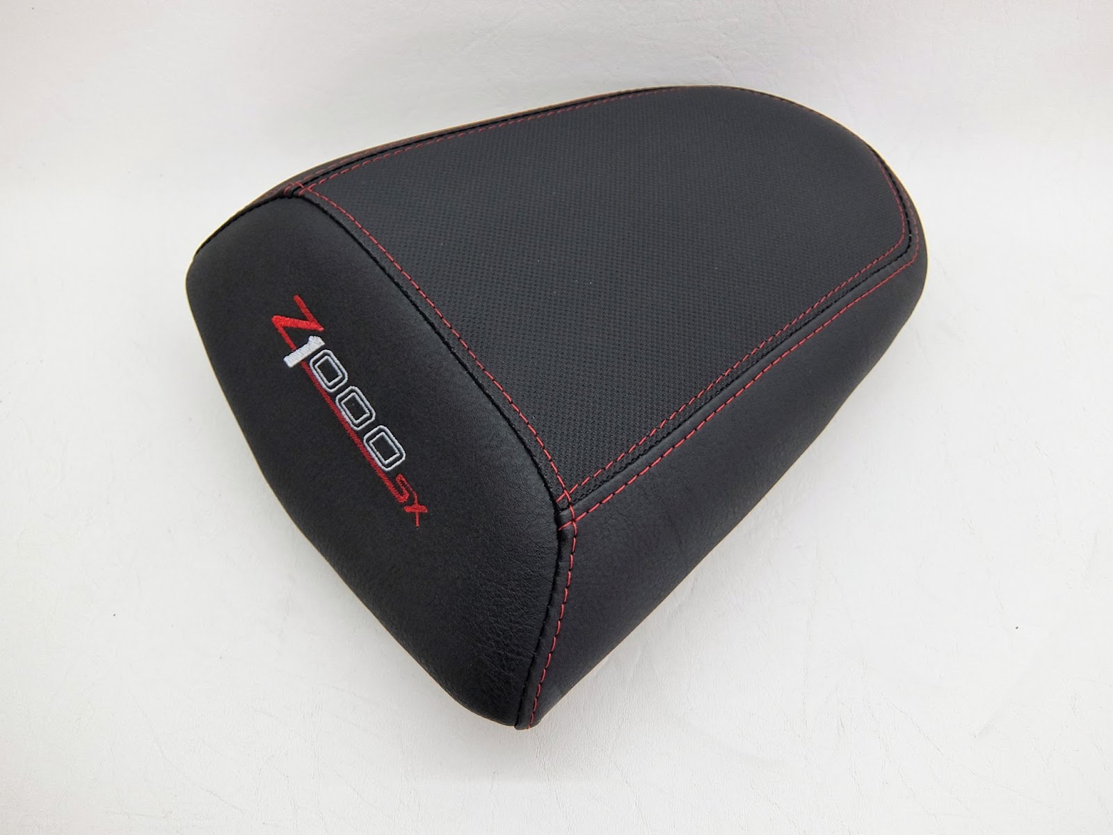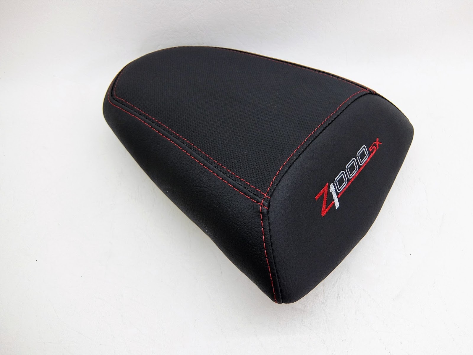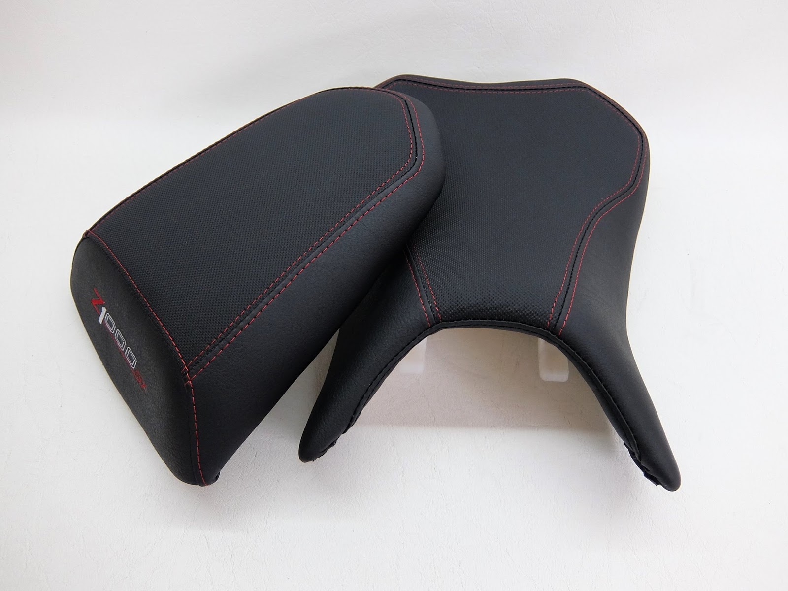 Fahrer und Soziussitz, kompletter Neubezug in Antirutsch und Matt mit einer körperspezifischen Komfortpolsterung inkl. Gel‑Aktivpad. Doppelte Ziernaht Rot, Stickerei in Rot/Weiß.