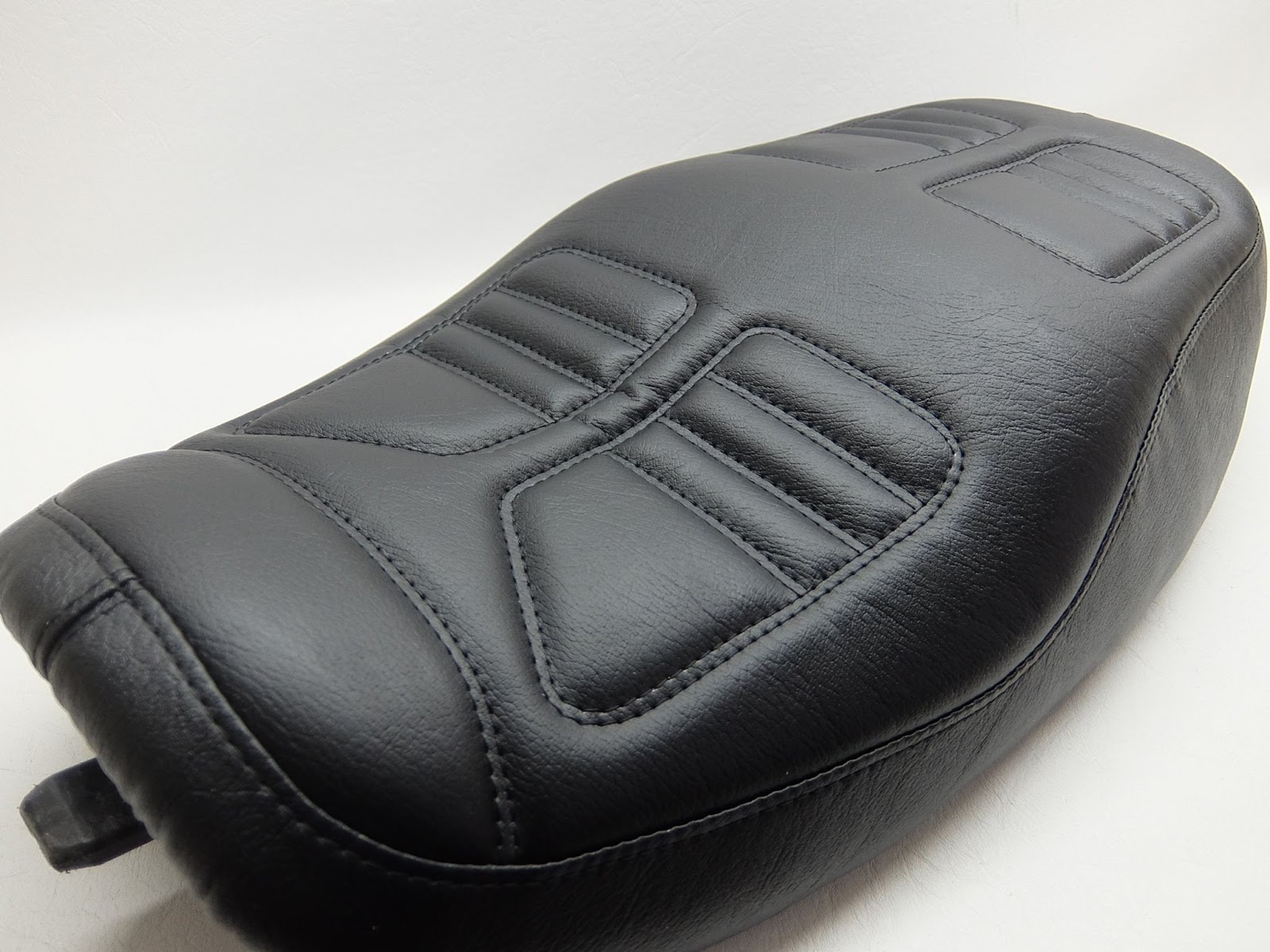 Sitzbank mit einem kompletten Neubezug in Classic‑Schwarz, einer körperspezifischen Komfortpolsterung inkl. Gel‑Aktivmatte und eingearbeitetem Tank‑/Sozius‑Aufrutschkeil. Mit individuellem Ziernahtmuster.