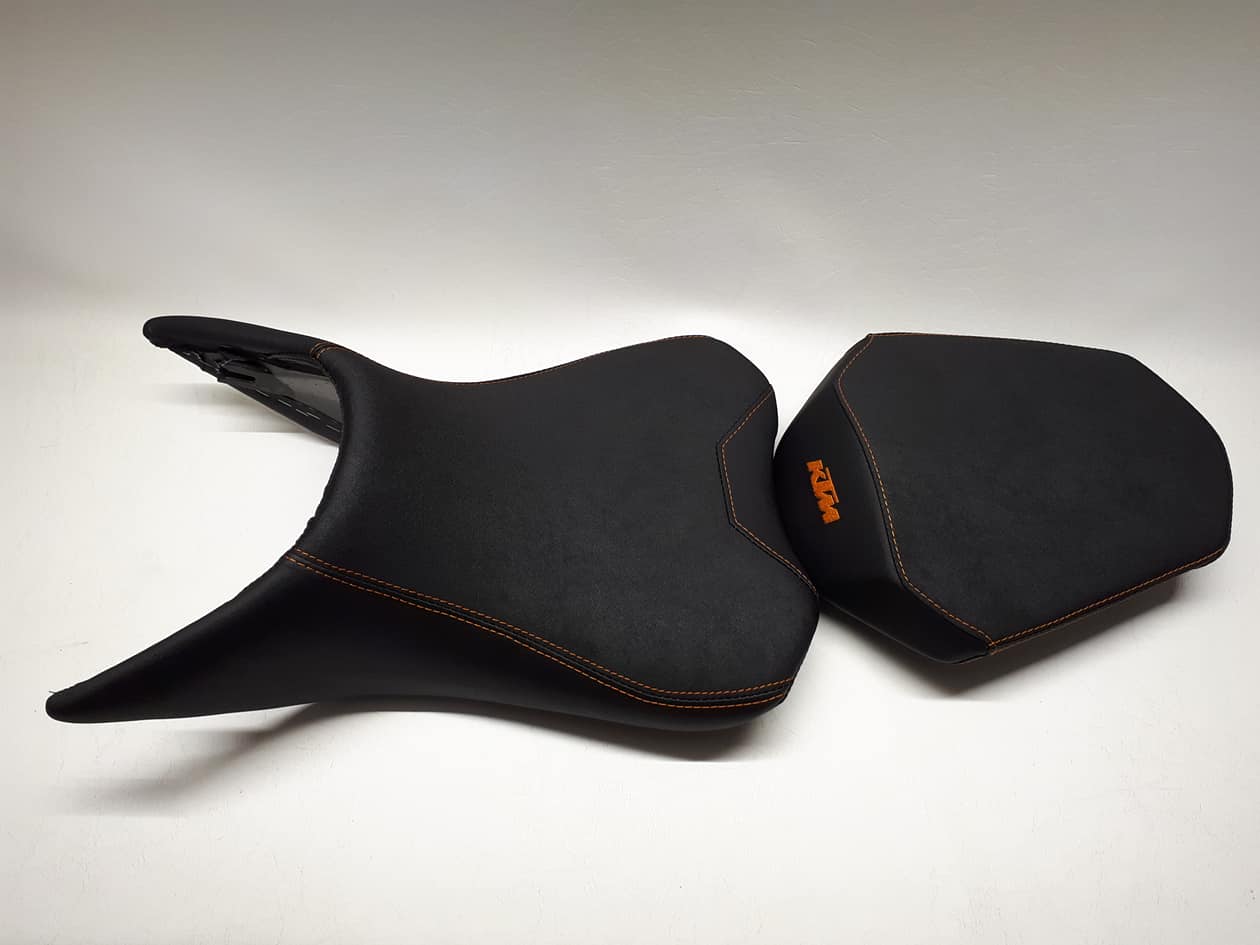 Neubezug in Nubuck und Matt, doppelte Ziernaht und Stick in Orange.