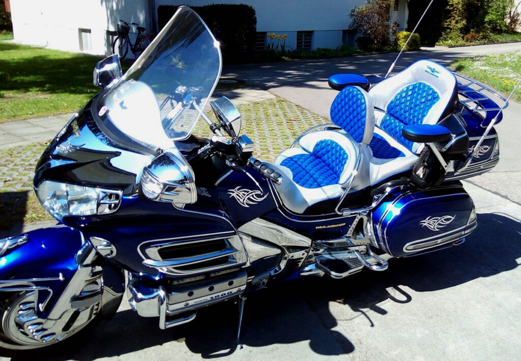 Lass dich verführen von der Pracht der Honda Gold Wing 1800. Auf Bikepolster.de findest du eine Galerie, die den Glanz und die Exzellenz der maßgefertigten Sitzbänke einfängt. Von der luxuriösen Polsterung bis hin zu den schimmernden Details – jede Sitzbank ist ein Meisterwerk, das darauf wartet, Teil deines Motorraderlebnisses zu werden. Erlebe, wie eine Sitzbank, die perfekt zu dir passt, jede Fahrt zu einem unvergesslichen Abenteuer macht. Für einen visuellen Eindruck der verschiedenen Stile und um dein Wunschdesign zu entdecken, besuche die Galerie auf der Webseite.