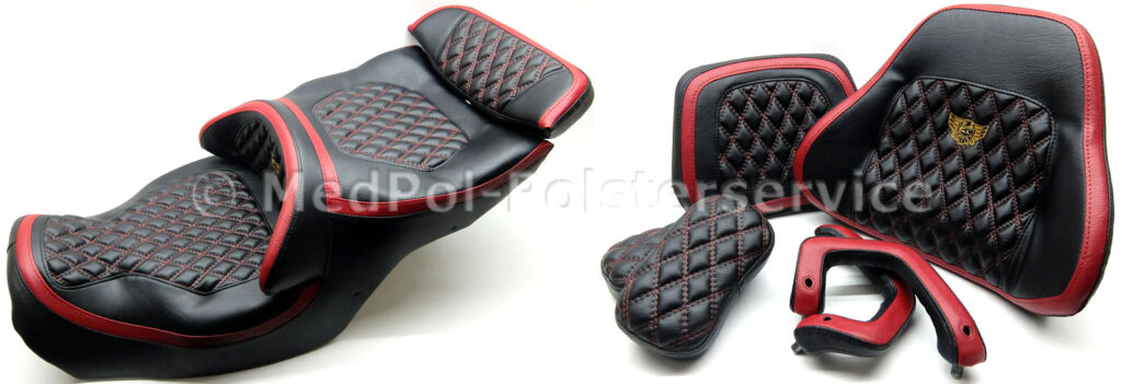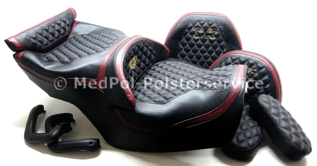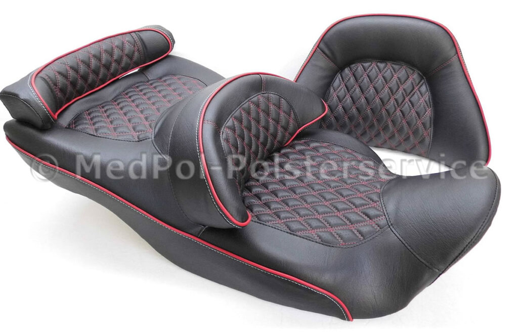 Entdecke die Welt des Komforts mit unseren maßgeschneiderten Sitzlösungen für GL 1500 bis GL 1800 Trikes. Unsere neugepolsterten Sitze bieten eine unvergleichliche Kombination aus Stil und Bequemlichkeit, die speziell für die Honda Gold Wing Serie entwickelt wurden. Mit einer Vielzahl von Optionen, einschließlich Technogeleinlagen und Sitzheizungen, passen wir jede Sitzbank an eure individuellen Bedürfnisse an.