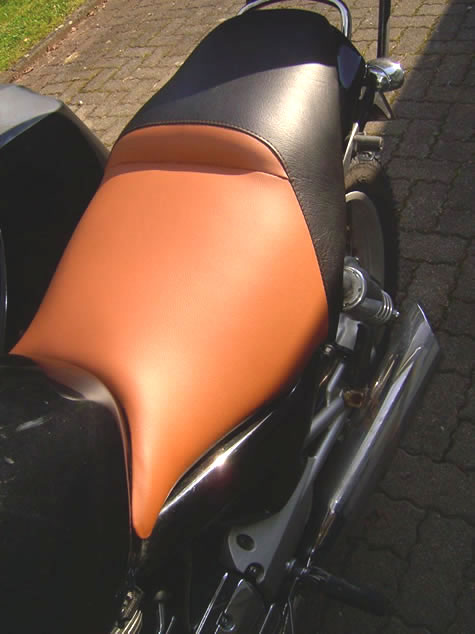 Die Sitzbank des Motorrads erhielt ebenfalls eine Komfortpolsterung, inklusive Geleinlage und eingebauter Stufe.