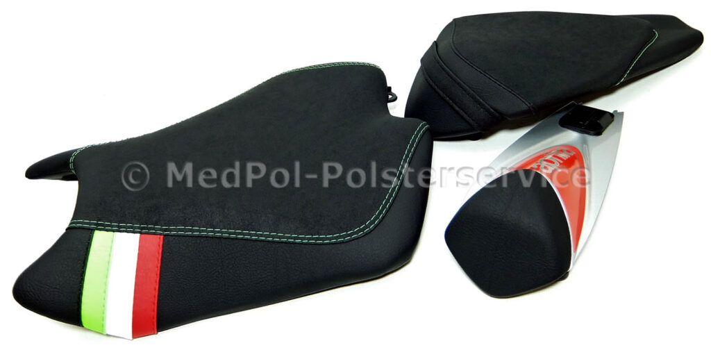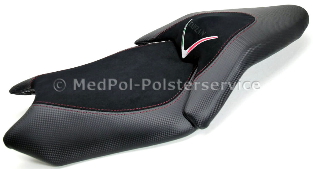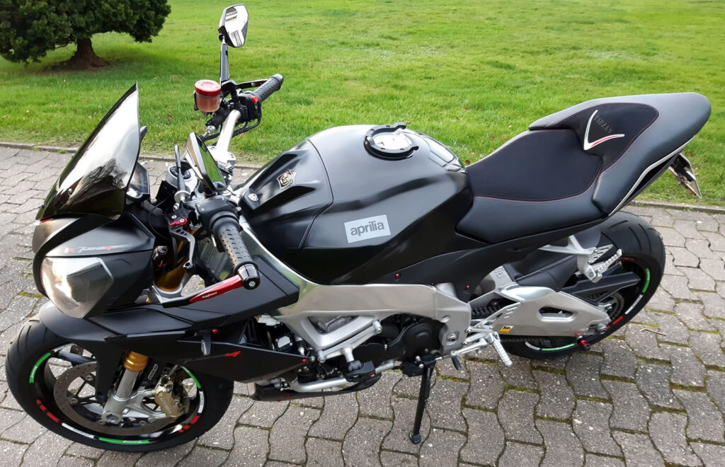 Aprilia Sitzbänke beim Bikepolsterer sind maßgeschneiderte Motorrad-Sitzbänke, die Komfort und Stil vereinen. Du kannst deine Aprilia-Sitzbank individuell gestalten und Anregungen aus der inspirierenden Modellgalerie holen. Ein Beispiel ist die Sitzbank für die Aprillia Tuono V4: Sie bietet Fahrer und Beifahrer hohen Komfort, eine optimale Sitzposition und ein attraktives Design mit roten und schwarzen Ziernähten. Entdecke hochwertige Sitzbänke für Aprilia Motorräder bei Bikepolster und bestelle jetzt!
