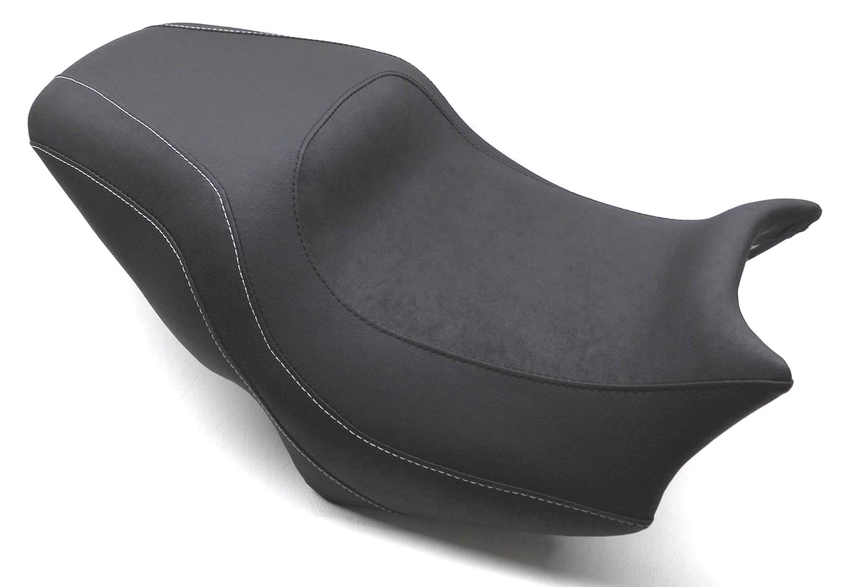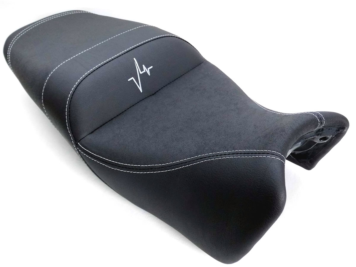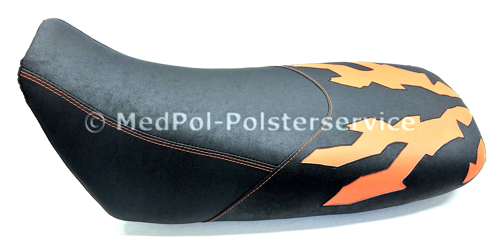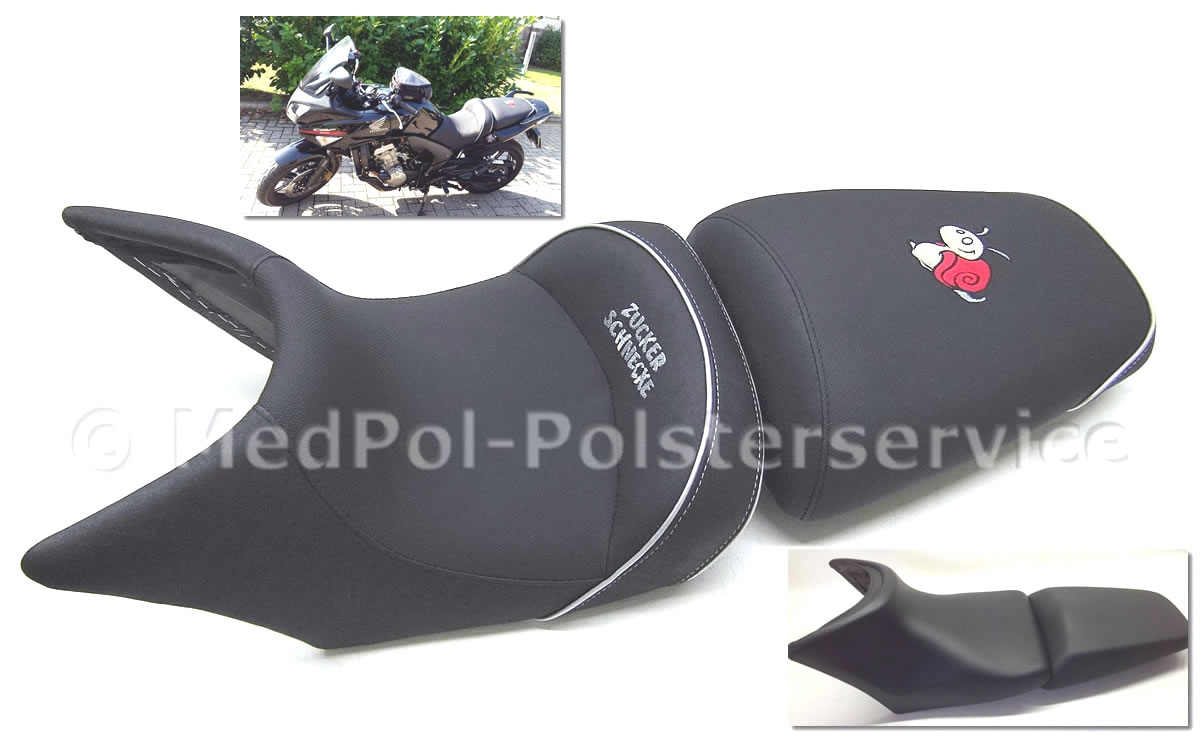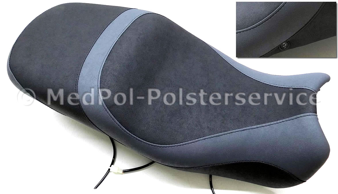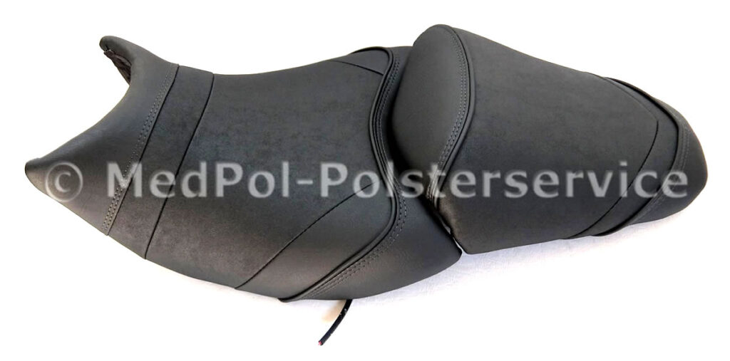 Unsere Sitzbankpolsterung besteht aus einem komplett neuen Bezug in Slim/Matt, der deiner Sitzbank einen modernen und eleganten Look verleiht. Der Bezug ist mit einer Rautensteppung und einer doppelten Ziernaht in Schwarz versehen, die für eine edle Optik und eine hohe Haltbarkeit sorgen. Außerdem kannst du deine Sitzbank mit einer individuellen Stickerei personalisieren, die deinen Namen, dein Logo oder dein Motto zeigt. Aber nicht nur das Aussehen zählt, sondern auch der Komfort. Deshalb haben wir unsere Sitzbankpolsterung mit einer Premium-Komfortpolsterung MedTec ausgestattet, die sich optimal an deine Körperform anpasst und dir eine angenehme Sitzposition ermöglicht. Der Fahrer- und der Soziusbereich sind mit dieser Polsterung versehen, die für eine optimale Druckverteilung und eine gute Belüftung sorgt. Zudem haben wir den Fahrersitz abgepolstert, die Flanken schmaler gestaltet und eine Lendenstütze aufgebaut, um dir eine bessere Ergonomie und eine bessere Kontrolle über dein Motorrad zu bieten. Du wirst den Unterschied spüren! Wenn du dich für unsere Sitzbankpolsterung interessierst, dann schau dir unsere Galerie an, wo du einige Bilder von dieser Sitzbank sehen kannst. Du wirst begeistert sein! Wir freuen uns auf deine Bestellung!
