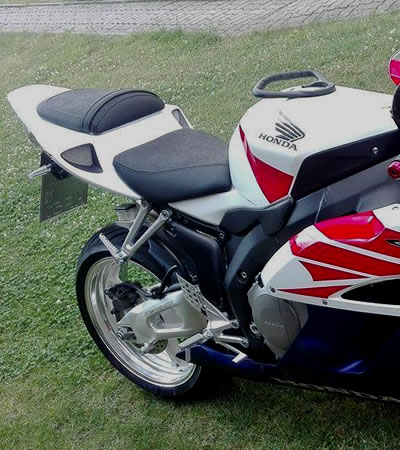 BikePolster, der Spezialist für maßgeschneiderte Sitzbänke für Honda Superbikes. Unsere Sitzbänke sind so konzipiert, dass sie perfekt zu den leistungsstarken und stilvollen Honda Superbikes passen. Jede Sitzbank wird individuell nach deinen Wünschen und den spezifischen Anforderungen deines Honda Superbikes gefertigt. Mit BikePolster erlebst du Komfort und Stil in perfekter Harmonie. Steig auf dein Honda Superbike und genieße die Fahrt mit BikePolster!”