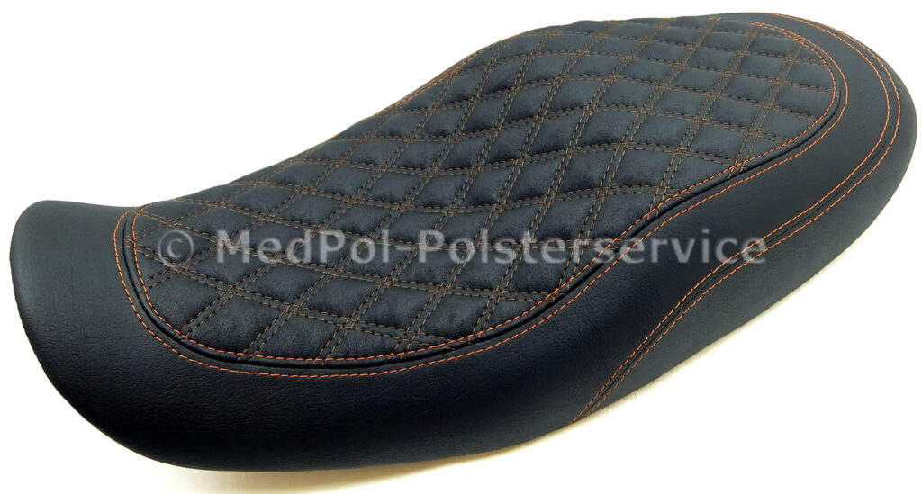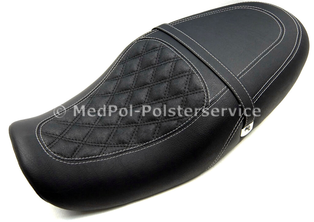 Unsere neugepolsterten Kawasaki „Zephyr“ Sitzbänke bieten höchsten Komfort und Stil für dein Motorrad. Jede Sitzbank wird individuell auf die Körpermaße des Fahrers angepasst, um maximalen Komfort zu gewährleisten. Das Design umfasst vielfältige geometrische Ziersteppungen und farblich wählbare Ziernähte, die dem Sitz eine elegante Optik verleihen. Die Bezüge sind in verschiedenen hochwertigen Materialien und Farben erhältlich.