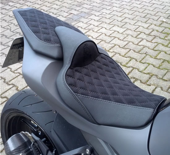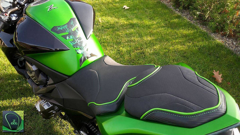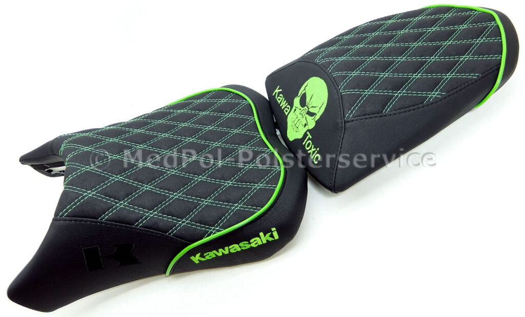 Wir verwandeln eure Vorstellungen in Realität – mit maßgeschneiderten Kawasaki Motorrad-Sitzbänken, die perfekt auf euren Körper abgestimmt sind und Komfort mit Stil verbinden. Gebt eurer Sitzbank mit einem unverwechselbaren Design neuen Glanz und erlebt jede Tour auf einem Polster, das so wirkt, als sei es eigens für euch angefertigt worden.