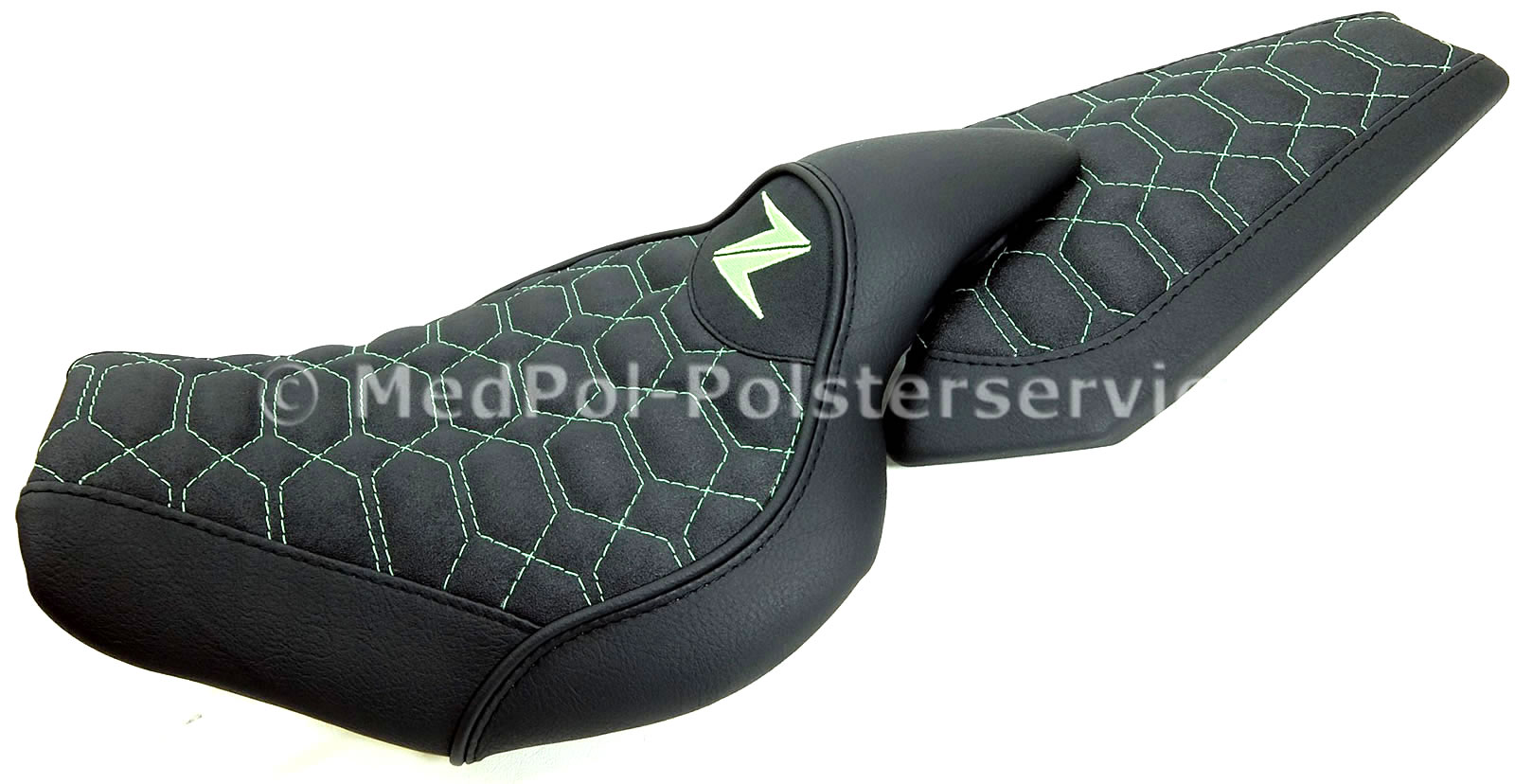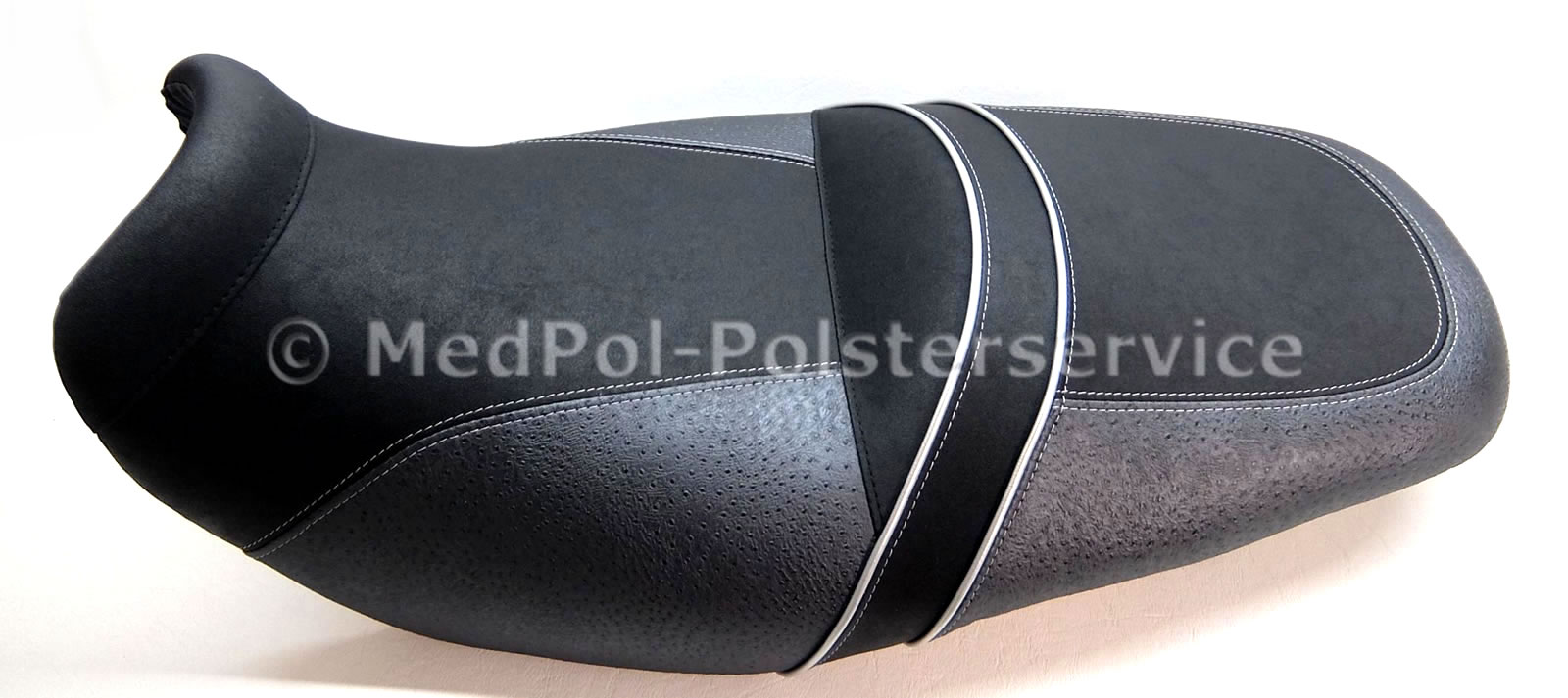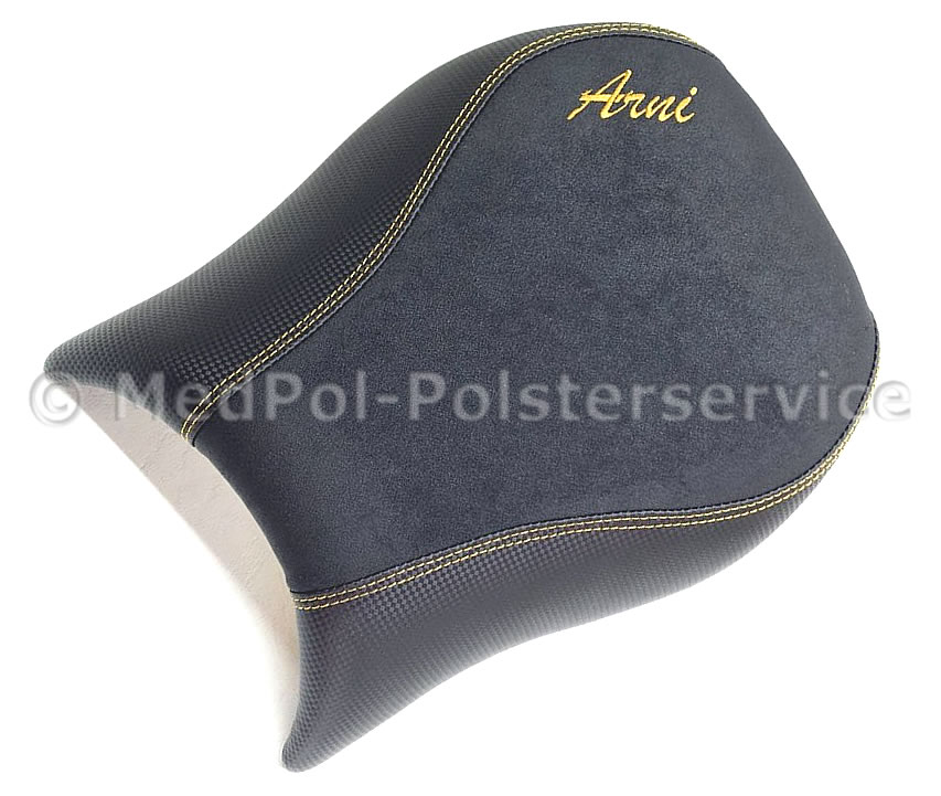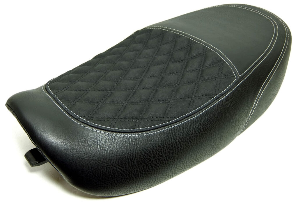 Unsere neugepolsterten Kawasaki „Zephyr“ Sitzbänke bieten höchsten Komfort und Stil für dein Motorrad. Jede Sitzbank wird individuell auf die Körpermaße des Fahrers angepasst, um maximalen Komfort zu gewährleisten. Das Design umfasst vielfältige geometrische Ziersteppungen und farblich wählbare Ziernähte, die dem Sitz eine elegante Optik verleihen. Die Bezüge sind in verschiedenen hochwertigen Materialien und Farben erhältlich.