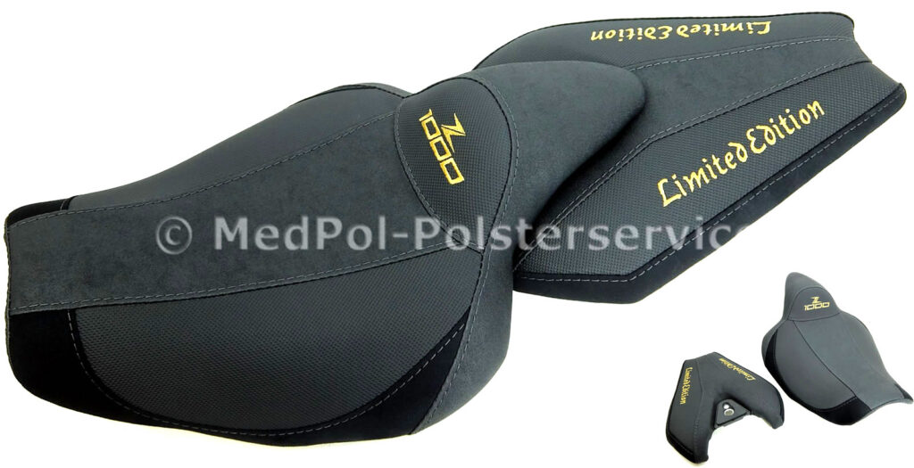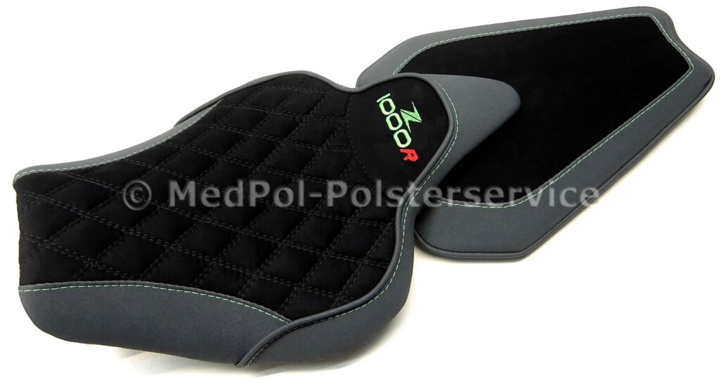 Bist du bereit für das ultimative Fahrerlebnis? Unsere maßgefertigten Sitzbänke für die Kawasaki Z 1000 R Edition sind genau das Richtige für dich. Nimm Platz und spüre den Unterschied – jede Fahrt wird zum reinen Vergnügen. Entdecke in unserer Galerie eine Auswahl an Sitzbänken, die wir mit höchster Sorgfalt und Genauigkeit für dich herstellen. Sie sind nicht nur optisch ansprechend, sondern bieten auch erstklassigen ergonomischen Komfort. Egal, ob du eine zusätzliche Komfortpolsterung mit Gel-Aktivmatte bevorzugst oder eine maßgeschneiderte Anpassung an deine Körpergröße suchst, bei uns findest du die ideale Lösung. Überzeuge dich selbst von der Qualität und dem Stil, den bikepolster.de zu bieten hat. Deine Z 1000 R Edition verdient nur das Beste! Durchstöbere die Bilder unserer handgefertigten Sitzbänke und wähle die perfekte für dein Motorrad.