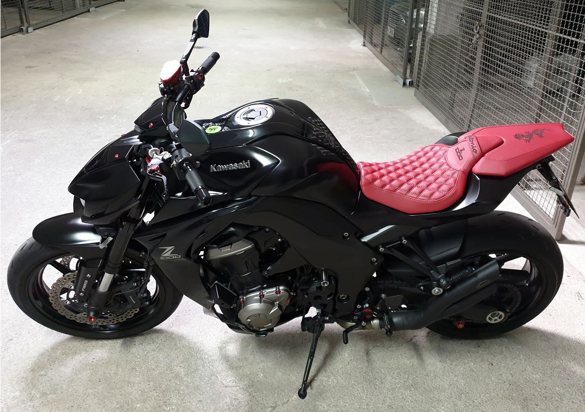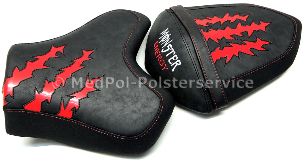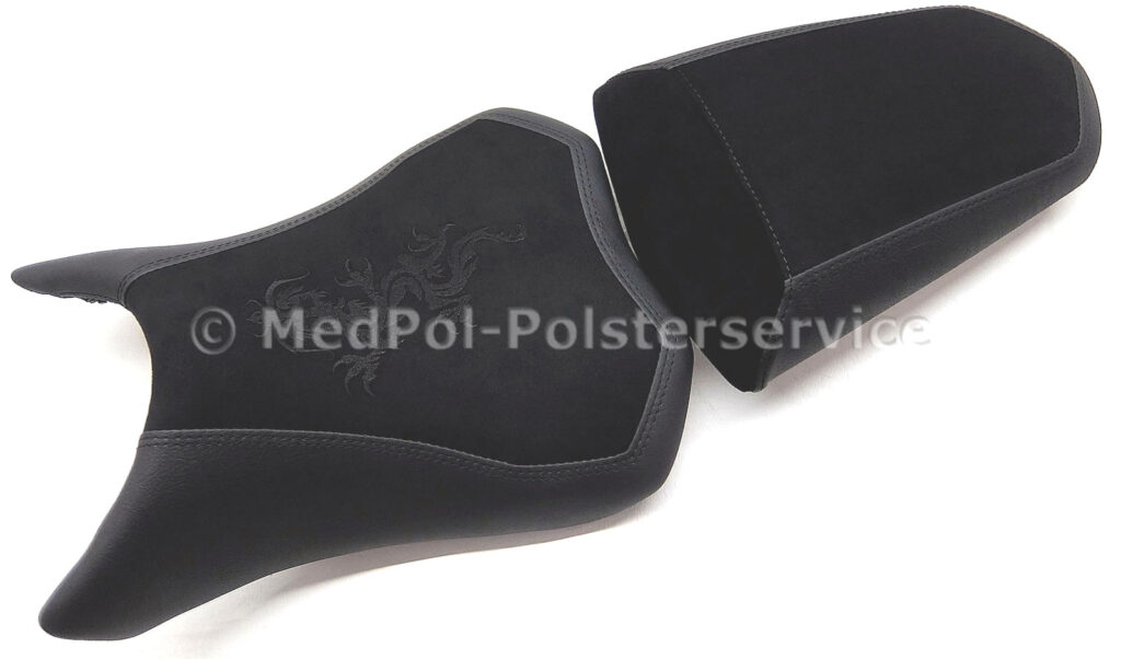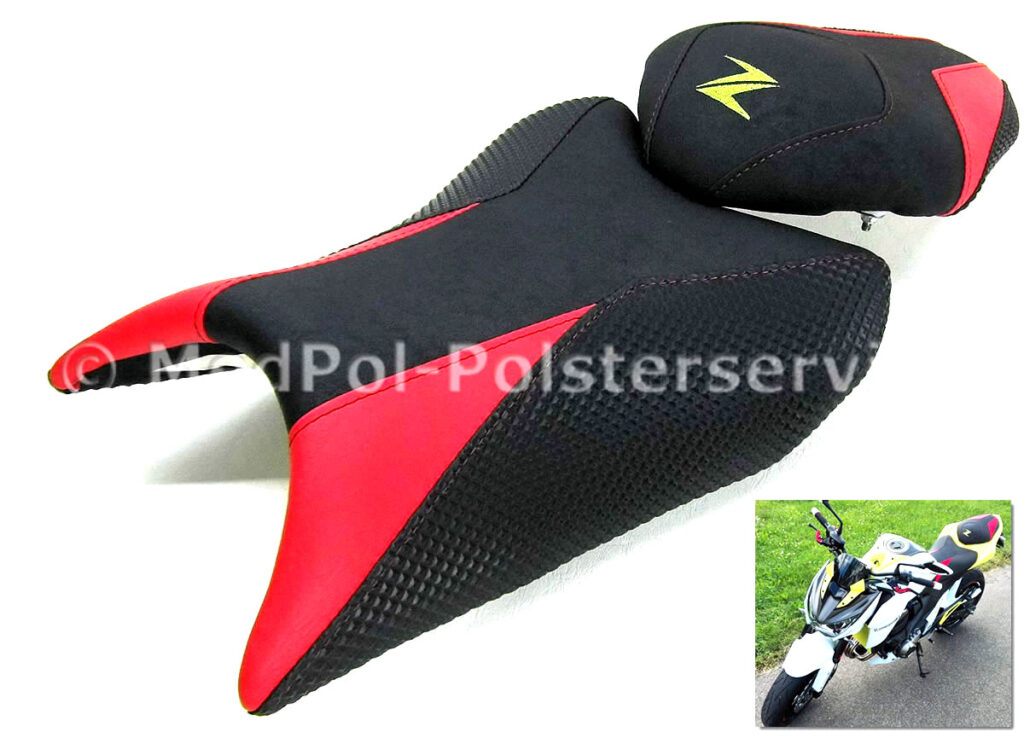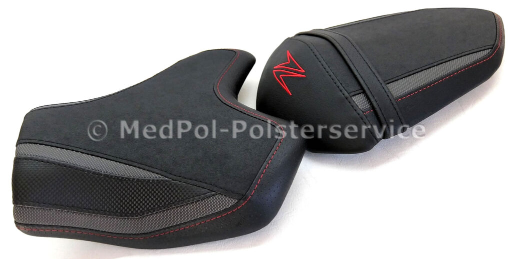 Erlebe den Unterschied mit einer maßgeschneiderten Sitzbank für deine Kawasaki Z 800. Unsere Sitzbänke, gefertigt aus Alcantara-S und Power-Rot, bieten nicht nur höchsten Komfort durch spezielle Polsterungen und Gel-Aktivmatten, sondern auch ein individuelles Design mit doppelter Ziernaht in Rot/Schwarz und roter Stickerei. Mit unserem einfachen Austauschverfahren bekommst du eine Sitzbank, die perfekt auf deine Körpermaße zugeschnitten ist – für maximalen Fahrspaß und einen beeindruckenden Look deines Bikes.