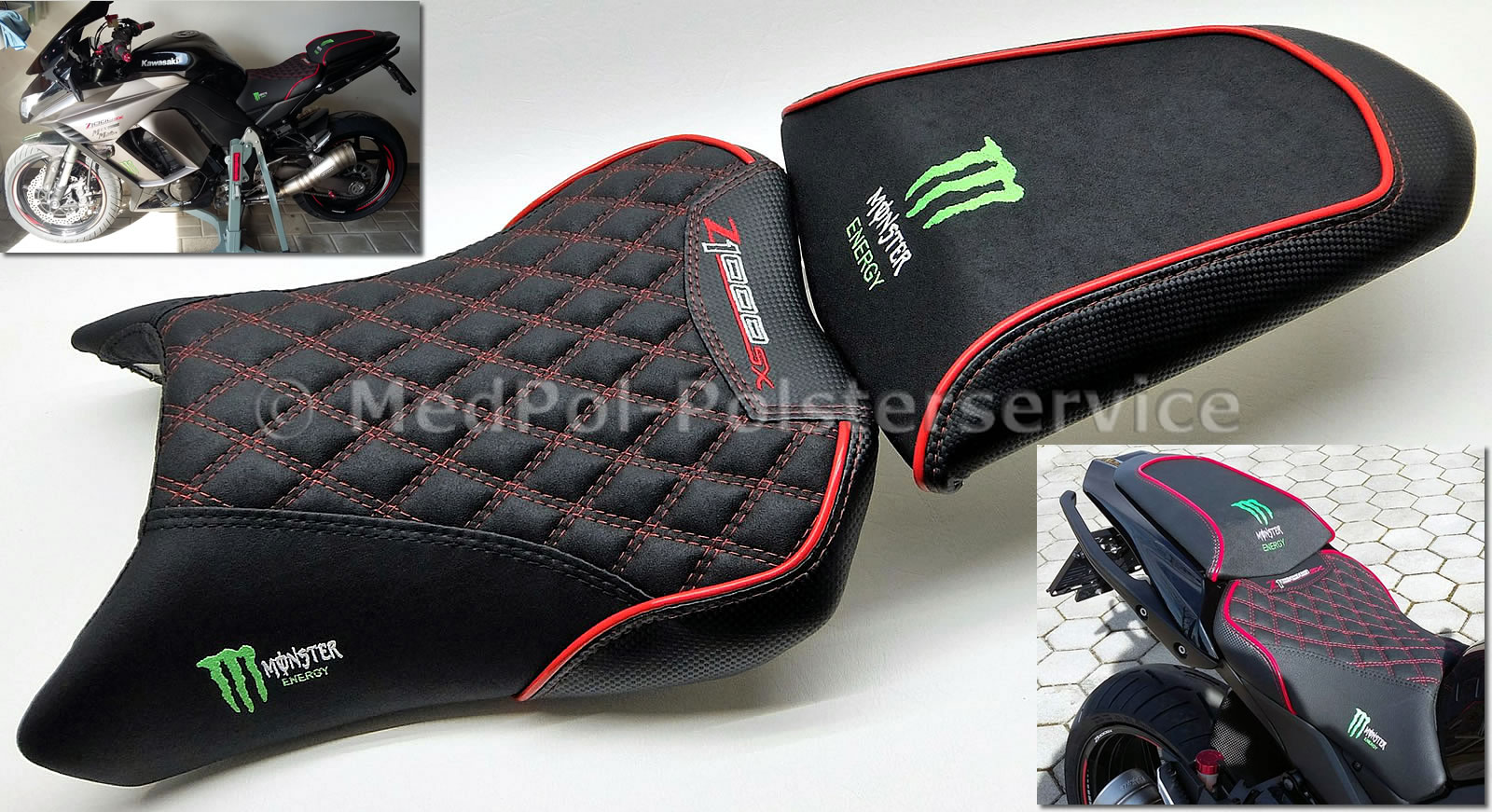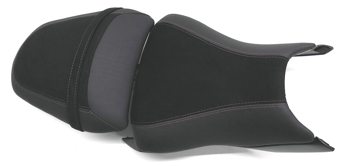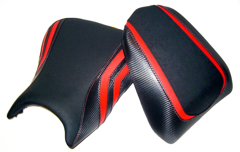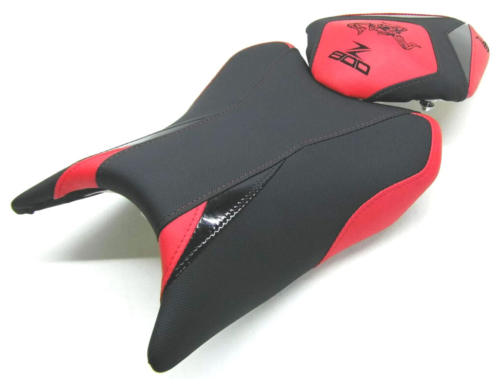Erlebe den Unterschied mit einer maßgeschneiderten Sitzbank für deine Kawasaki Z 800. Unsere Sitzbänke, gefertigt aus Alcantara-S und Power-Rot, bieten nicht nur höchsten Komfort durch spezielle Polsterungen und Gel-Aktivmatten, sondern auch ein individuelles Design mit doppelter Ziernaht in Rot/Schwarz und roter Stickerei. Mit unserem einfachen Austauschverfahren bekommst du eine Sitzbank, die perfekt auf deine Körpermaße zugeschnitten ist – für maximalen Fahrspaß und einen beeindruckenden Look deines Bikes.
