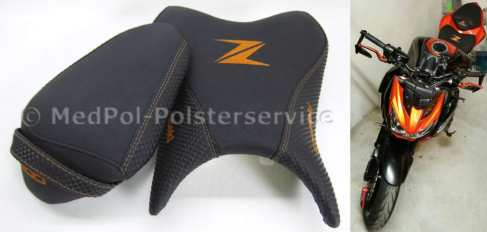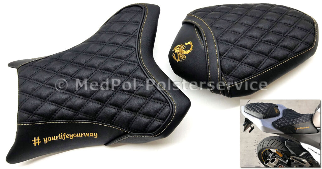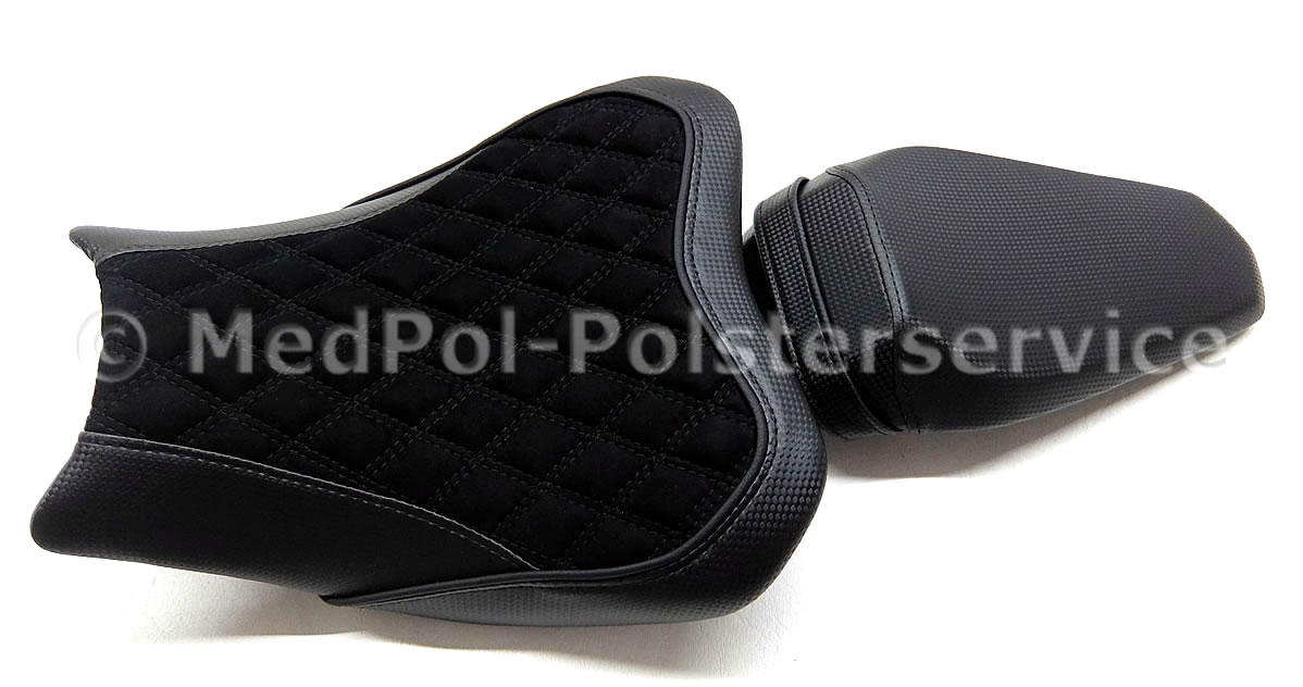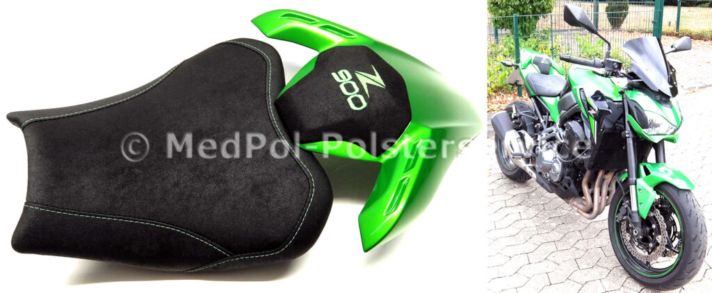 Tauch ein in die Welt des maßgeschneiderten Komforts mit unseren Sitzbänken für die Kawasaki Z 900. Fühl den Unterschied, wenn du auf unseren professionell gepolsterten Sitzbänken sitzt – jede Fahrt wird zum puren Genuss. Sie bieten nicht nur ein optisches Highlight, sondern sind auch ergonomisch geformt, um dir die beste Unterstützung auf jeder Tour zu garantieren. Ob du eine Extra-Komfortpolsterung suchst oder eine individuelle Anpassung an deine Körpermaße wünschst, wir haben die perfekte Lösung für dich. Schau dir die Bilder unserer Kunstwerke an und überzeuge dich selbst von der Qualität und dem Stil, den wir bei bikepolster.de bieten.