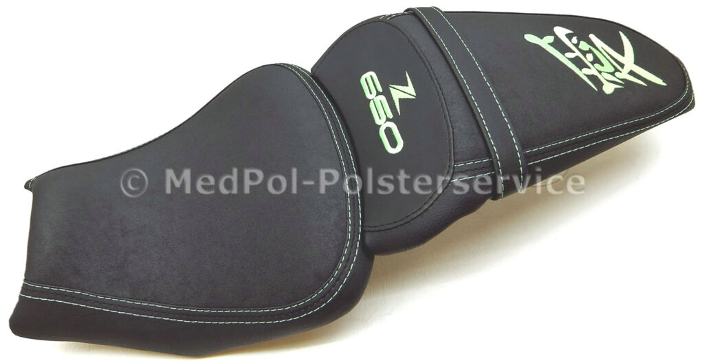 Entdecke maßgeschneiderte Sitzbänke für deine Kawasaki Z 650, die Komfort und Stil perfekt vereinen. Mit hochwertigen Materialien und individueller Anpassung an deine Bedürfnisse sorgen unsere Sitzbänke für ein unvergleichliches Fahrerlebnis. Ob durch spezielle Polsterungen oder einzigartige Designelemente wie die dreifache Ziernaht – jede Fahrt wird zum Erlebnis. Nutze unser Austauschverfahren, um deine alte Sitzbank gegen eine neue, perfekt angepasste zu tauschen, und hebe das Erscheinungsbild deines Bikes auf ein neues Level.