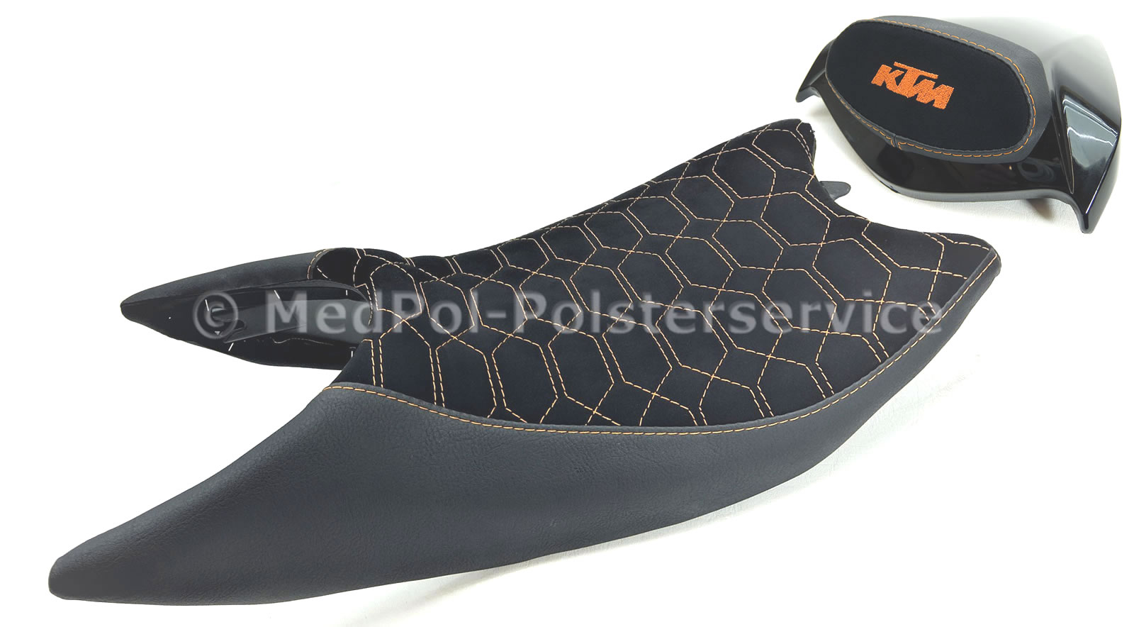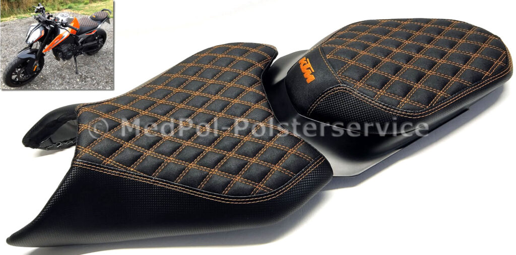Wir verwandeln Eure Sitzprobleme in greifbare Lösungen – mit maßgeschneiderten, medizinisch gepolsterten KTM Motorrad-Sitzbänken, die Komfort und Stil perfekt kombinieren. Gebt Eurer Sitzbank mit einem einzigartigen Design neuen Glanz und genießt jede Tour auf einem Polster, das sich anfühlt, als wäre es nur für Euch gemacht.