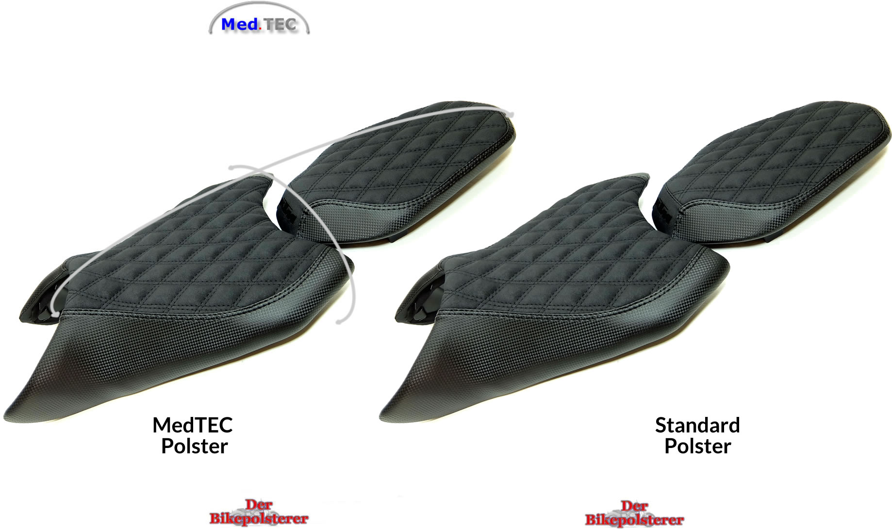 KTM Med-Tec Duke Carbon Schwarz – Stilvoll und Komfortabel Für diejenigen, die es noch exklusiver mögen, haben wir die KTM Med-Tec Duke Carbon Schwarz im Angebot. Das Carbon-Schwarz-Design mit der edlen Rautensteppung verleiht deiner Duke einen unverwechselbaren Charakter. Die Stickerei setzt zusätzliche Akzente, und dank der optimalen Polsterung wird jede Tour zum puren Vergnügen. Maßgefertigte KTM Duke Sitzbänke – Med.TEC Premium-Komfortpolsterung (bikepolster-shop.de)