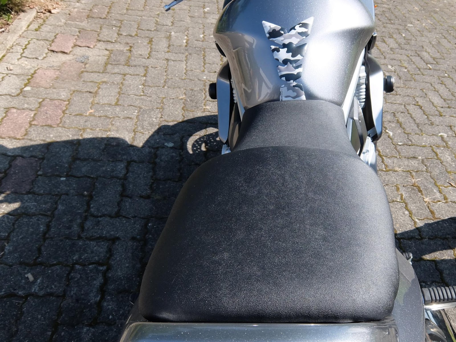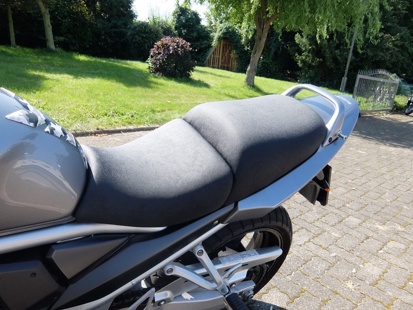 Mit unserem Express‑Service ⇒ Fahrer & Soziussitz: kompletter Neubezug in Nubuck mit einer Komfortpolsterung / Gel‑Aktivmatte gefertigt. Fahrersitz um 2 cm abgepolstert, Soziussitz mit Aufrutschkeil versehen und um 3 cm verlängert.