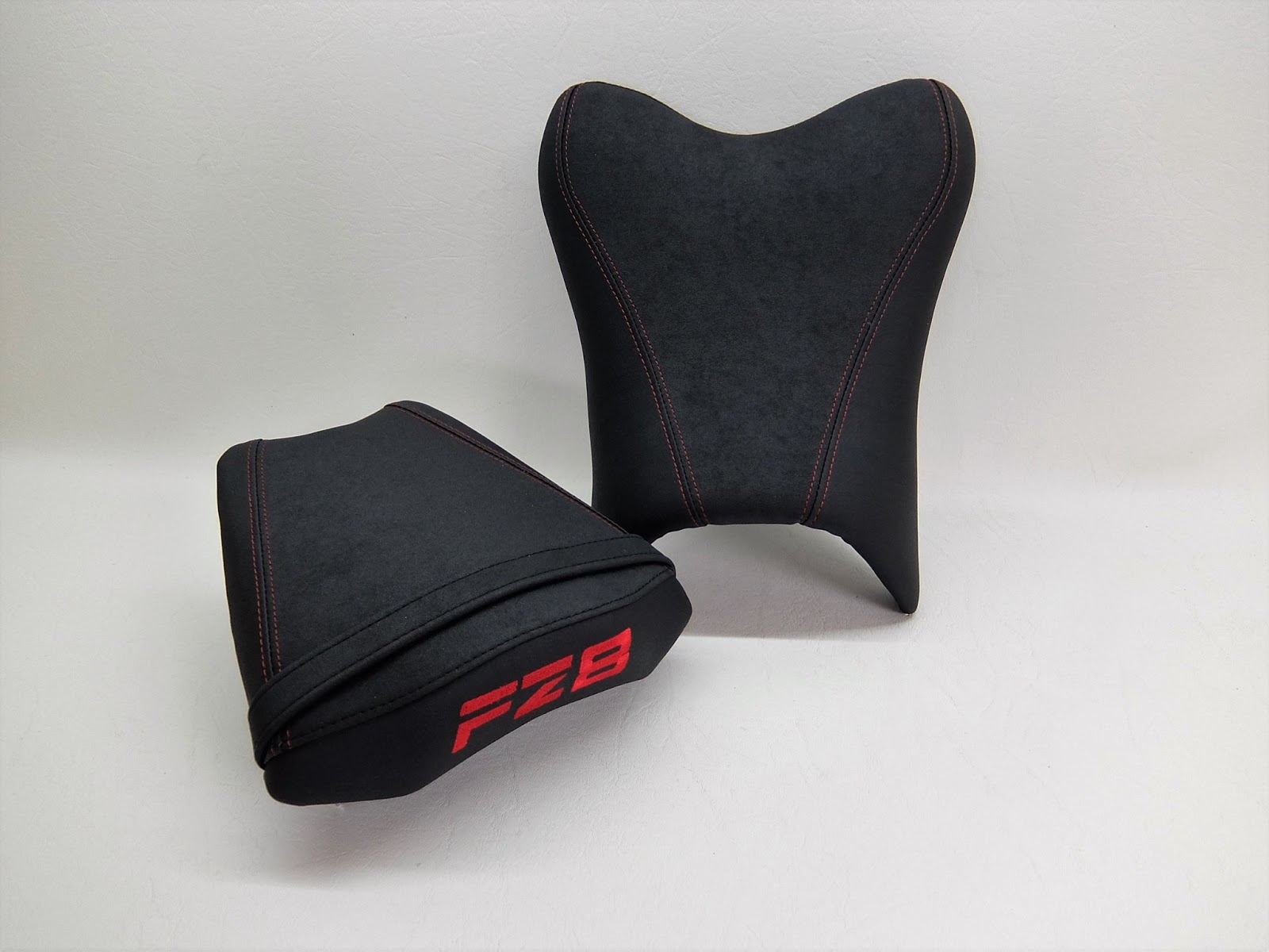 Fahrer & Soziussitz mit einem kompletten Neubezug in Nubuck und Matt, mit einer körperspezifischen Komfortpolsterung incl. Gel-Aktivmatte ausgestattet, Abpolsterung um 2cm. Doppelte Ziernaht/Stick in Rot + Gurtanfertigung.