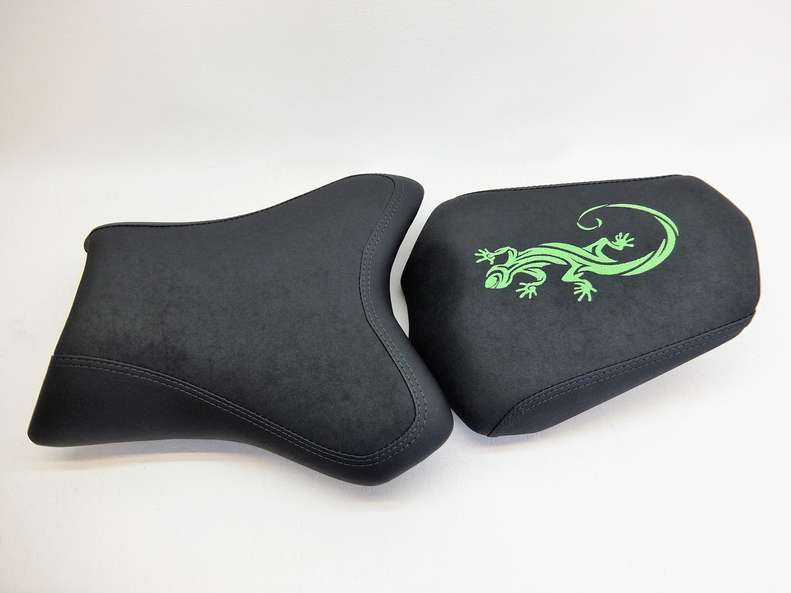 Fahrer- und Soziussitz: Neubezug in Nubuck und Matt mit Komfortpolsterung/Gel-Aktivmatte,