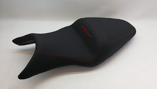 Kompletter Neubezug in Antirutsch, doppelte Ziernaht/Stick in Rot. An den Körper angepasste Komfortpolsterung/Gel-Aktivmatte, Abpolsterung, Flanken schmaler gestaltet und Lendenstützen-Ein/Umbau.