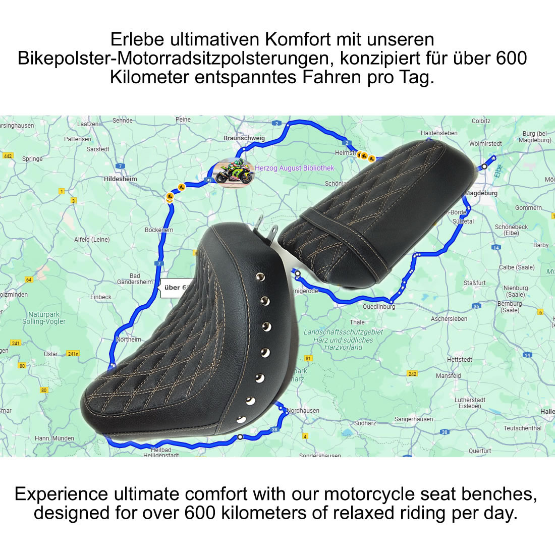 Unsere neue Komfort-Sitzbank für die Super Meteor wird nach deinen Körpermaßen gefertigt – Größe und Gewicht fließen direkt in die Polsterung ein. Das Ergebnis: spürbar mehr Ergonomie, weniger Druckpunkte und entspanntes Fahren auch über 600 km am Tag.